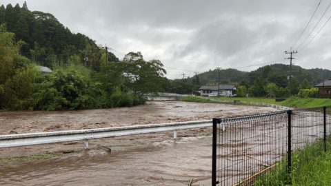 道路まで川の水が氾濫していたり田んぼが